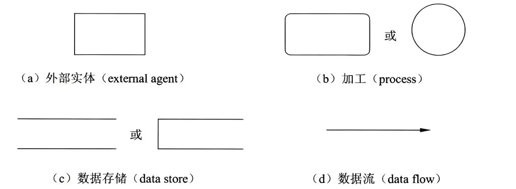 数据流图中的基本图形元素包括数据流、加工、数据存储和外部实体。